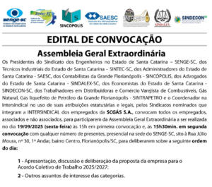 Assembleia Geral Extraordinária SCGás dia 19/09/2025