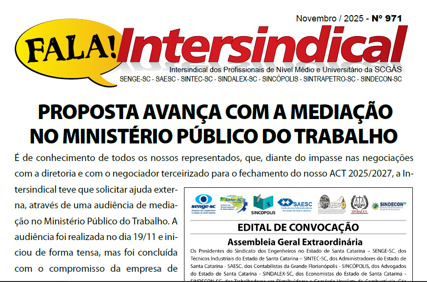 Fala nº 971 – SCGás – PROPOSTA AVANÇA COM A MEDIAÇÃO NO MINISTÉRIO PÚBLICO DO TRABALHO
