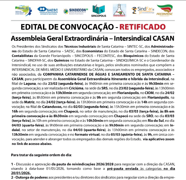 Edital de Convocação AGE – Itinerante – CASAN ACT 2026_2028