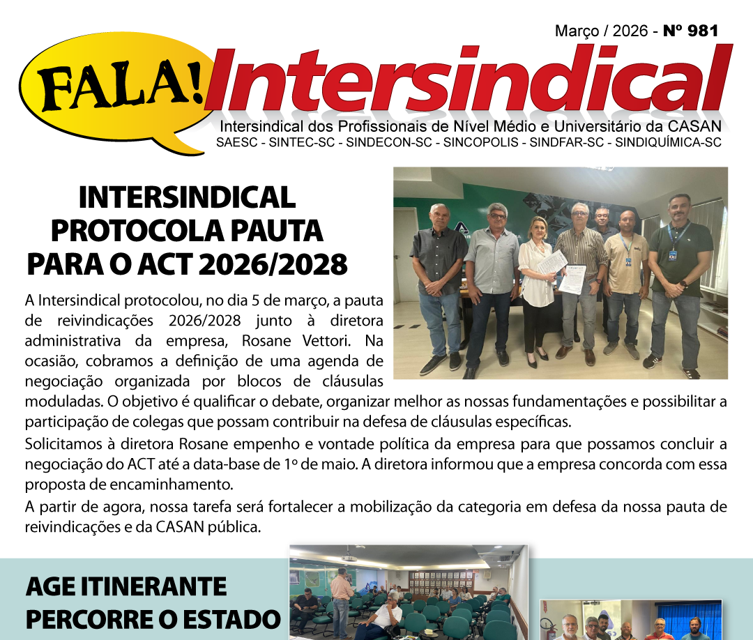 Intersindical protocola Pauta do ACT – CASAN 2026/2028 março 18, 2026